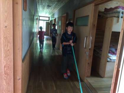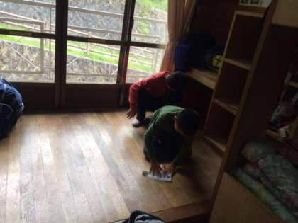 来た時よりも美しく、頑張って掃除しました。ミーティングルームも、ピカピカに雑巾がけしてくれました。