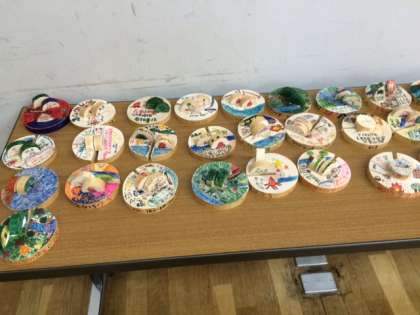 工夫した作品がたくさんできました。山の家の思い出をいっぱい飾ってね。