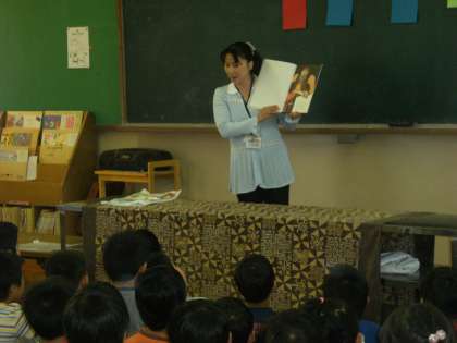 本校の保護者や地域の方のボランティアの活動である「おはなしわくわく」が中間休みにありました。今日の絵本は「ゼラルダと人喰い鬼」というお話でした。作者のトミーアンゲラーは「すてきな3にんぐみ」という作品でも有名な絵本作家ですが,このお話もちょっと怖くて,でも最後にはハッピーになるというお話でした。子どもたちはどうなるのかとワクワクドキドキして,終わりはほのぼのとする展開を楽しいんでいました。