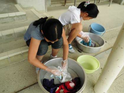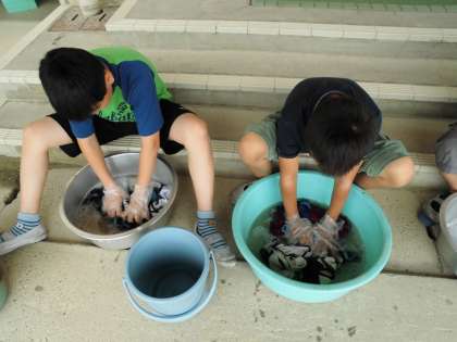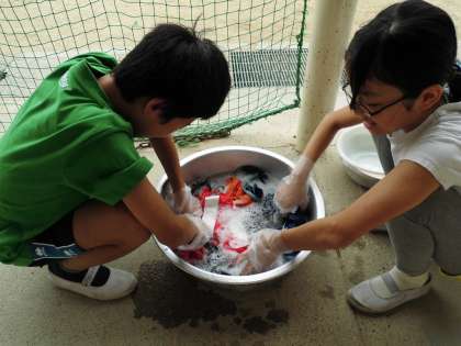 お家の人がしている手洗いって、こんなに大変やったんやなぁ。とつぶやきながら汚れを落としていました。