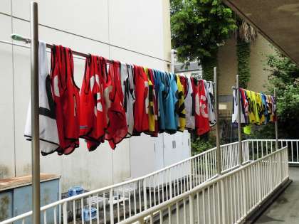 みんなの頑張りで、学校の体育で使うビブスをきれいにしました。
