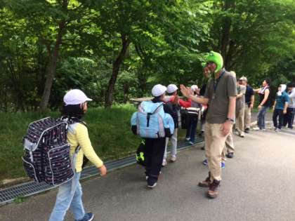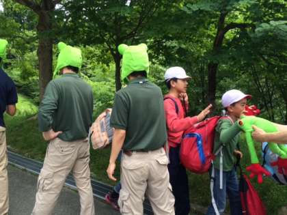 花背山の家のマスコットキャラクター「ハナコロ」ちゃんにちなんで、カエルのかぶりものを着ておられました!