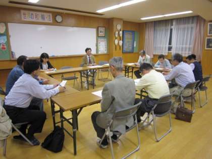 メンバーは,自治連合会長様をはじめ,各種団体長の皆様,平成16年に本校のビオトープづくりでお世話になり,現在もビオトープ観察会などでお世話になっている出町ホタルの会の辻村様,当時ビオトープネットワーク京都代表の小泉様が参加されました。