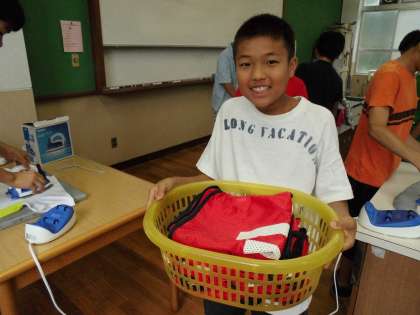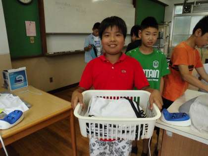 学校の体育で使うビブスも手洗いしてきれいにしました。