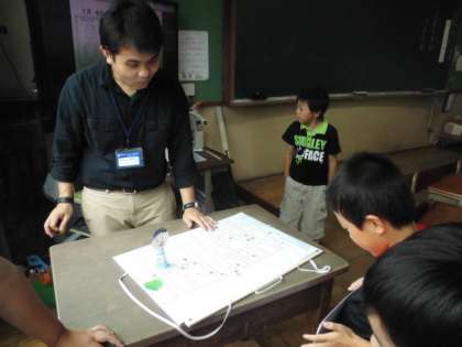 “Ok. Turn right.”と地図の上で,お気に入りの場所まで