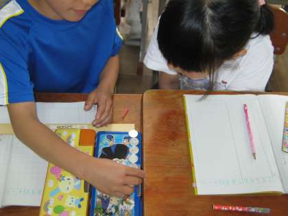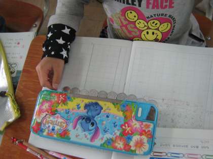 今日は,数図ブロックに続き,クリップ,1円玉を使っていろいろなものの長さを測りました。子どもたちは,友達と進んでものの長さを数値化するという活動を楽しんでできていました。