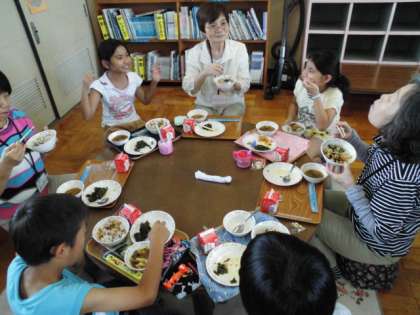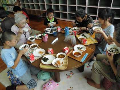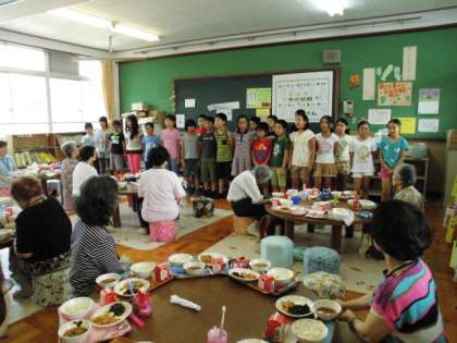 4年1組ですこやか給食がありました。地域の方達と一緒にテーブルを囲みながら給食を食べました。初めは緊張してなかなか話せなかった子どもたちでしたが,食べながら少しずつ話をしていくうちに緊張がほぐれ,様々なグループから楽しそうな声が聞こえてきました。好きな物や昔の話を聞いたり,今,総合でやっている「吉田の地域は住みやすいのか」ということを実際に聞いたりしている子もいました。終始和やかな雰囲気で,楽しそうにしていました。