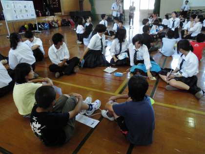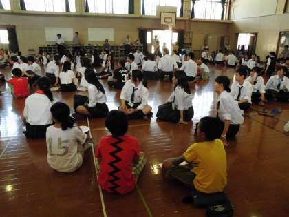 高校生の堪能な英語と、ジェスチャーでの表現力に驚いた様子の6年生でした。