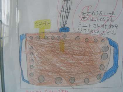 5月13日にミニトマトの種をまきました。「ごまつぶみたい」と言っていましたが,本当に小さな種で,その日に書いたカードには「ちゃんとそだってくれるかなぁ・・」と心配そうな気持が綴られていました。