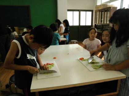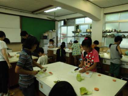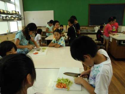 家庭科室では、包丁の使い方を練習していました。