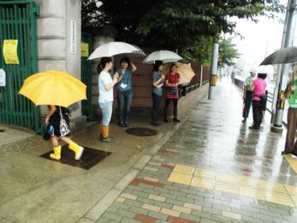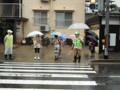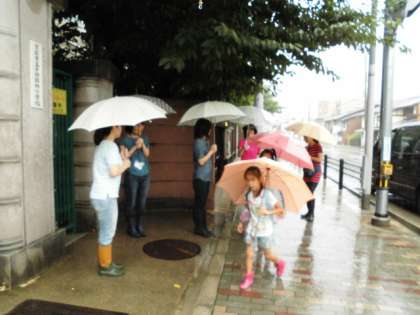 ひどく雨が降る中の登校となりました。