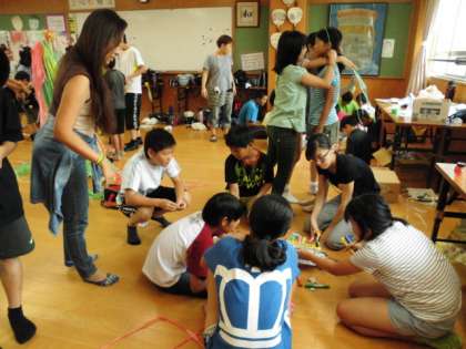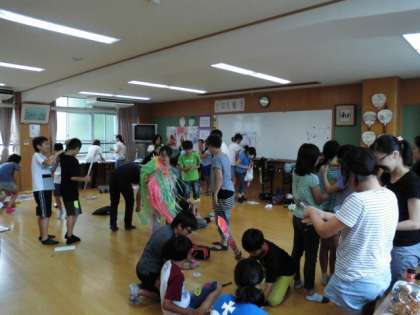 夏まつり恒例の6年生のお化けやしきの準備の様子です。