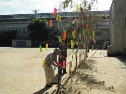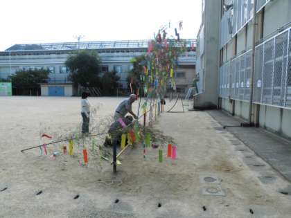 七夕かざりの準備