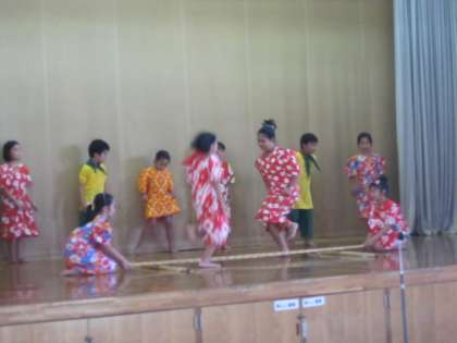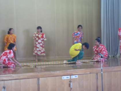 国際・音楽部では、外国の音楽やダンスを通して、いろいろな国の文化について体験します。バンブーダンスもその一つ。リズムに合わせて、竹を動かし、足を上手に動かします。フィリピンからやってきた子も、日本で育った子もいっしょに楽しい踊りをすることができました。