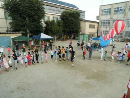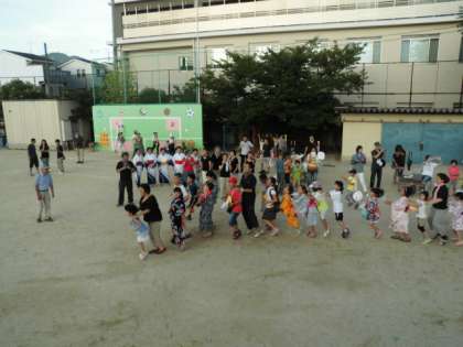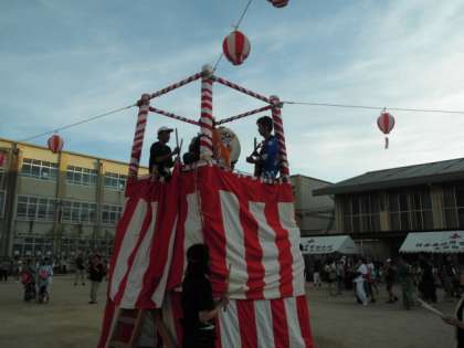 今年の盆踊りでは、やぐらの上での太鼓をいろいろな人がたたきました。