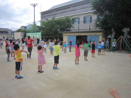 今日もラジオ体操に多くの児童が集まりました。曇っていたので少し涼しかったです。今日は,3組・1〜3年の夏学習,6年生の水泳記録会があります。それぞれにめあてをもって,今日1日を過ごしましょう。