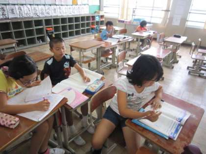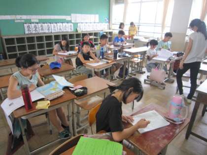 学校での夏学習が、4年生を除いて最終日になりました。外は午前中から猛暑ですが、クーラーの聞いた教室で、自分の課題をがんばる姿がありました。4年生は、みさきの家へ向けて8月の後半にも夏学習があります。ここからは、自分自身で計画的に学習を進めて、気持ちよく学習が始まる初日が迎えられるといいですね。