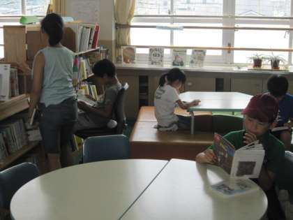 夏休みに1度だけ、図書館が開館されます。読み終えた本を返して、新しく本を借りに何人かの子どもたちがやってきました。校長先生との約束で、たくさん本を読んで、すばらしい本との出会いがあった子どもたちもいるのではないでしょうか。
