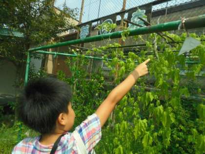 最後には,ビオトープで育てているツルレイシの実ができたことを見に行き,それぞれ生長を感じていました。