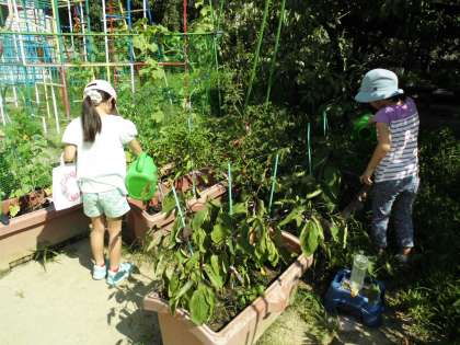 夏休み、当番制で水やりにきています。