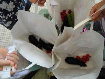 今日は、オクラ・なす・ミニトマトが収穫できました。