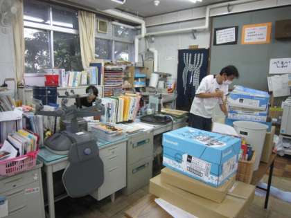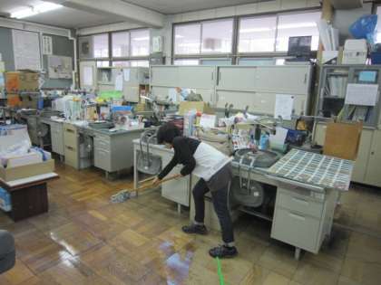 明日から学校も閉鎖日になり、しばらくの間お休みです。その前に、職員室もいすや物を机に上げてワックスがけをしました。お休み明けには、すっきりとした初日が迎えられることでしょう。