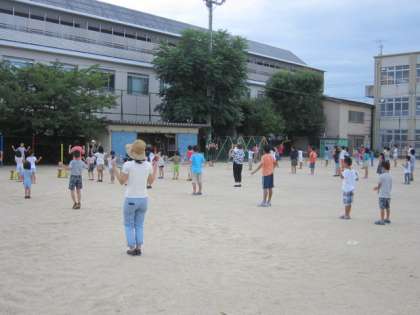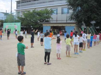 ラジオ体操も,今日を含めて残すところあと2日になりました。開始前は小雨も降っていましたが,開始時には雨もやみ実施することができました。明日は最終日です。天気も危ぶまれますが,元気に参加しましょう。