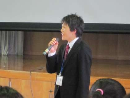 2年1組担任の尾崎利奈先生が、出産のため、しばらくお休みされます。そこで、夏休みが明けた今日からは、江口由宇仁先生が2年1組を担任します。江口先生は、これまで2年1組の体育の先生として子どもたちと関わってきました。これからも、よろしくお願いします。