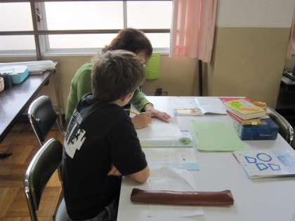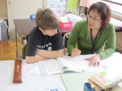 そこで,この日の第5学年の算数科の時間は,日本語指導担当の先生が,Aさんを抽出して,懇切丁寧に指導しています。