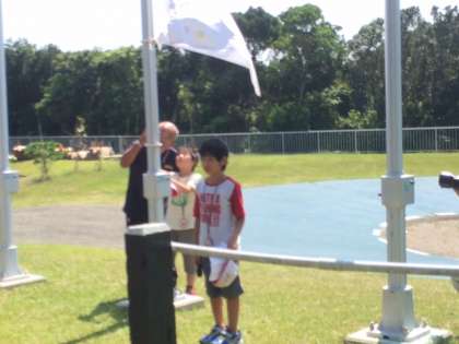 今年から入所式は、第一営火場で行いました。校歌と共に旗揚げです。
