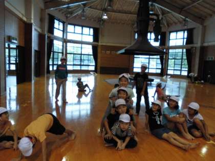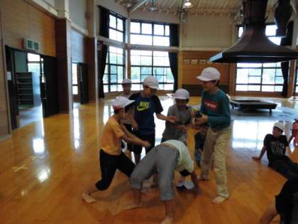 手つなぎおにを楽しんだ後は、グループで、表現運動に挑戦しました。