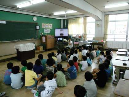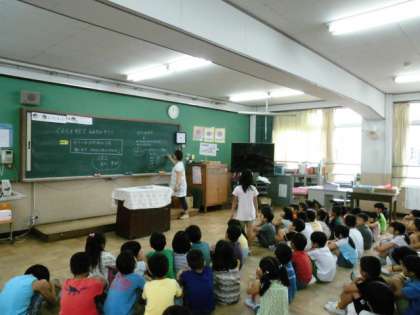 動物にあげようということで、動物に何をあげるのかを子どもたちが考えて発表していました。