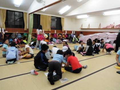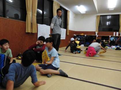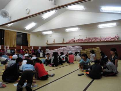 今夜は、女子はバンガロー、男子はこの60畳の部屋で寝ます。
