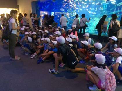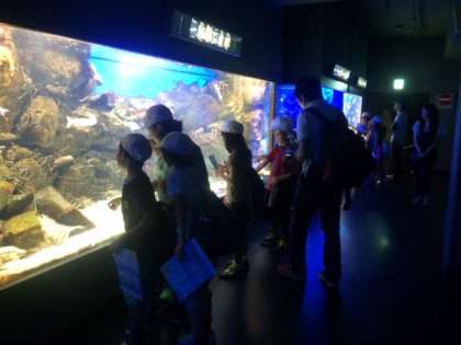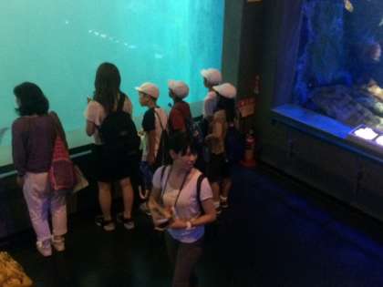 いきなり、大水槽があり、子どもたちの視線も釘づけです。