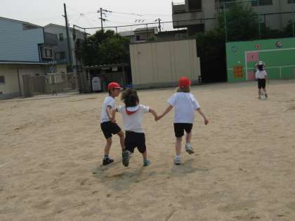 体育の時間 2年生と楽しく,手つなぎ鬼を楽しみました。
