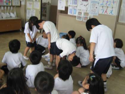 ゾウさんのまねをして,お鼻を揺らしたり,お友達を見つけてお辞儀をしたり・・・