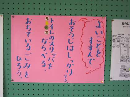 3組児童の具体的な自己評価できるめあてを掲示して取り組んでいます。自分でもできたという実感がわき,できることが増えていきます。