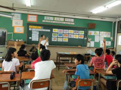ゲームをしたり、クイズをしたりして、慣れ親しみました。