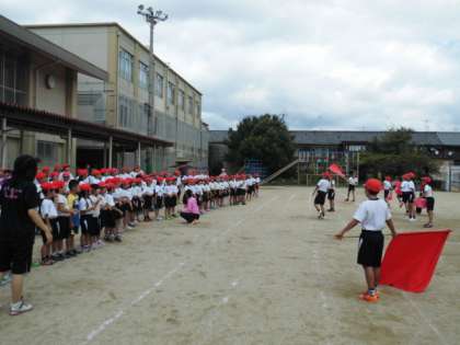 全校練習で、次に応援合戦をしました。