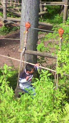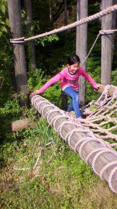 冒険の森には,ロープの上を進んで行くものや,ぶら下がって進んでいくものがあります。楽しそうに進んでいます。
