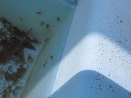 プールの生き物観察〜救出の学習ありました。あまり大きな虫はいませんが,よーくみるとたくさんいました。