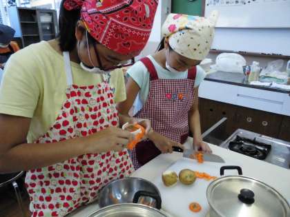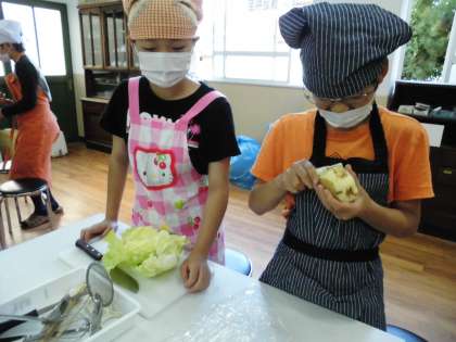 野菜の大きさ,切り方,ゆで具合・・・。班のメンバーの好みに合わせながら考えました。