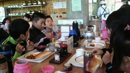 3日目の朝,全員元気です。おいしく朝食バイキングをいただいています。