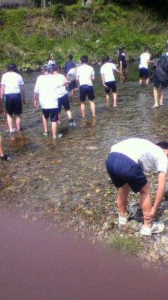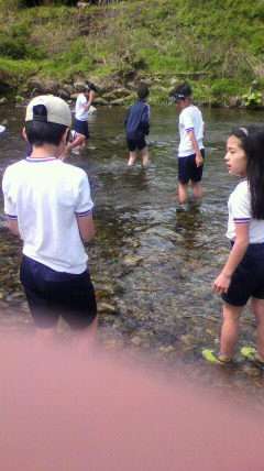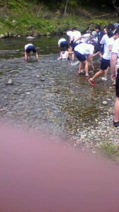 川の活動です。四錦の近くの鴨川とは,水温が違います。いる生き物も多少違います。