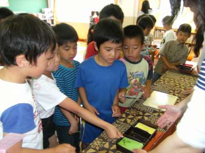 本校の保護者や地域のボランティアの方々で活動していただいている「おはなしわくわく」が本日も中間休みにありました。お話は「わたしとあそんで」という絵本でした。読み聞かせのあと,参加した子どもたちは,カードにハンコを押してもらうのですが,10個たまった子どもは,さらにお楽しみで「特製迷路」をいただけることになっています。いろいろな工夫をして参加を促していただき,本当にありがとうございます。
