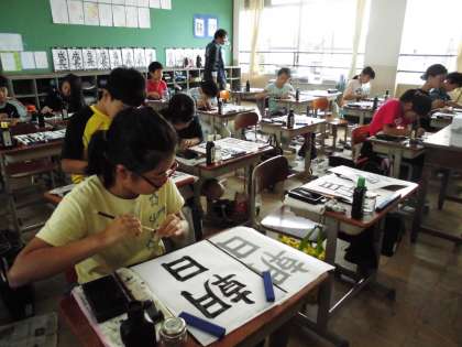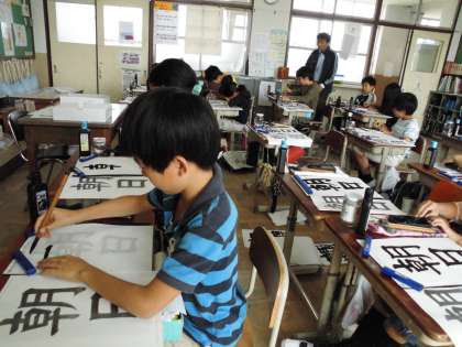 休み時間も墨をすって心を静めたり,はらい,はねの練習をしている子どもたちの姿が見られました。