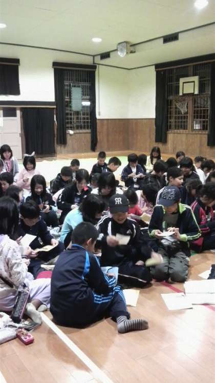 山の家も3日目の夜。少しホームシックにもなってきたころ,お家の人から子どもたちに書いていただいた手紙を読みました。みんな嬉しそうです。あと2日頑張る力が湧いてきました。その後,返事の手紙を家の人に書きました。山の家のことをいろいろお知らせしていると思います。楽しみにしていてください。