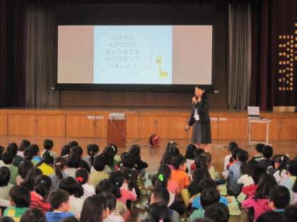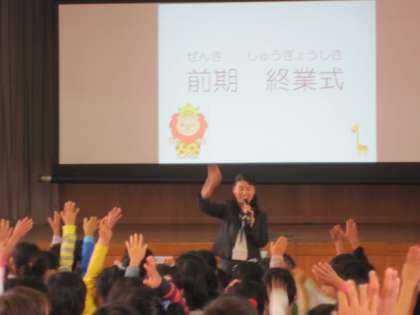 10月8日、今日は前期の最終日でした。1時間目は、体育館で終業式を行いました。校長先生から、前期を振返ってのお話がありました。それぞれの学年で取り組んだ学習や行事の写真を見ながら、がんばったことを振り返りました。また、今日もらう通知票についてのお話がありました。通知票を自分の励みや反省としてしっかり受け止め、さらに自分を高めてほしいと思います。