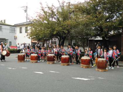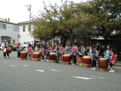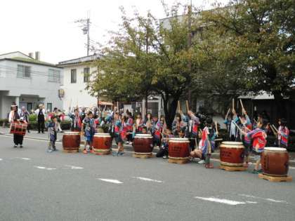 学校の前の演奏が済むと、次は、場所を移動しての演奏です。