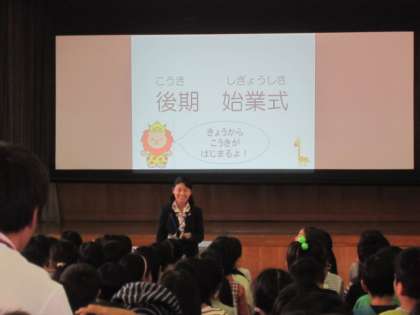 今日からいよいよ後期のスタートです。学校では、始業式を行いました。